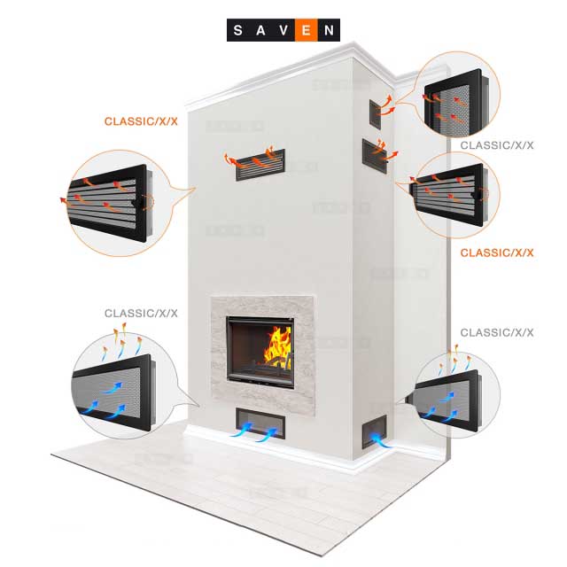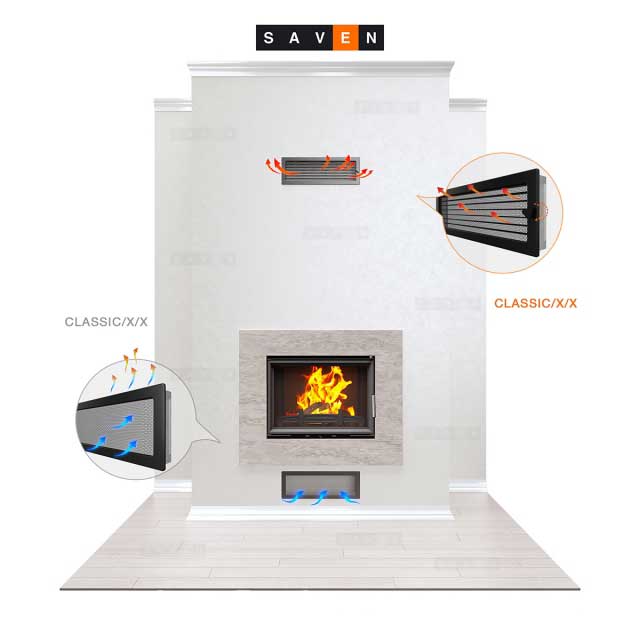 Z kolei, gdy kratka ma służyć do nawiewu chłodnego powietrza do obudowy, powinna być zainstalowana w dolnej części kominka. Wlot zimnego powietrza na dole zabudowy powinien mieć przekrój minimum 10 dm2, aby zapewnić odpowiedni przepływ powietrza odbierającego ciepło od korpusu wkładu. Powietrze musi swobodnie opływać wkład, dlatego też zaleca się, aby powierzchnia kratki była odpowiednio dobrana do wymogów urządzenia.