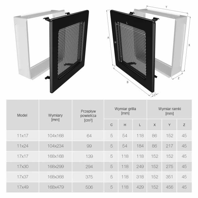 Szczegółowe dane kratki kominkowej SAVEN: