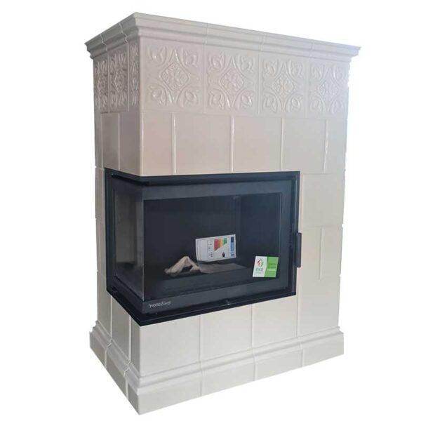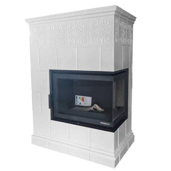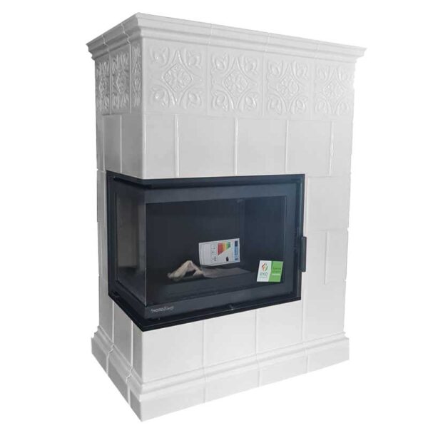 MISTRZOWSKIE RZEMIOSŁO I TRWAŁA ELEGANCJA – Obudowa kominka wykonana jest z autentycznych kafli ceramicznych wzbogaconych szamotem, co zapewnia wyjątkowe właściwości akumulacyjne ciepła. Starannie wypalane kafle nadają piecowi klasyczny, ponadczasowy wygląd i zwiększają jego odporność na wysokie temperatury.