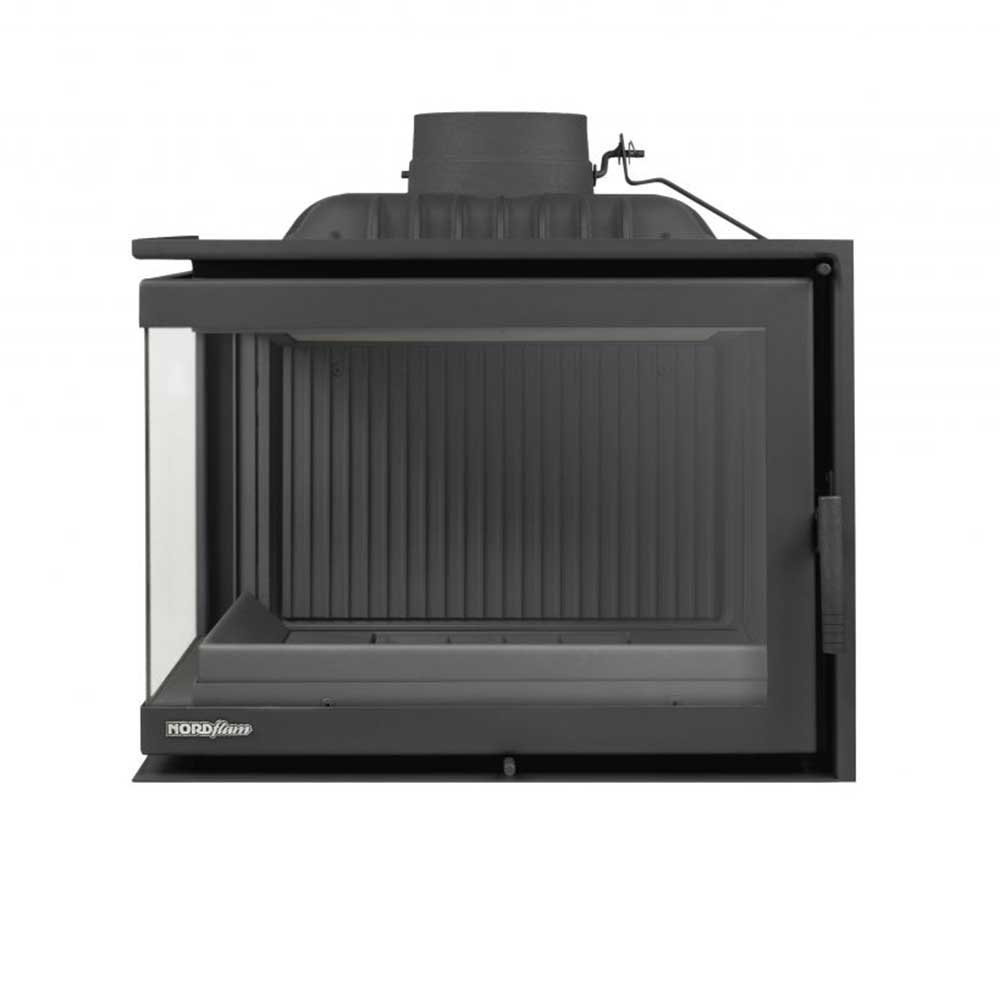 Wyposażony w żeliwny wkład model ETNA o mocy nominalnej 13 kW renomowanej marki NORDFLAM, piec spełnia surowe wymogi normy ECO Design 2022 (Ekoprojekt 2022), gwarantując wysoką efektywność energetyczną w klasie A. Dzięki żeliwnemu wkładowi kominek zapewnia skuteczne i równomierne rozprowadzanie ciepła, a jego funkcje zwiększają komfort użytkowania. Dostępny z prawą lub lewą boczną szybą.