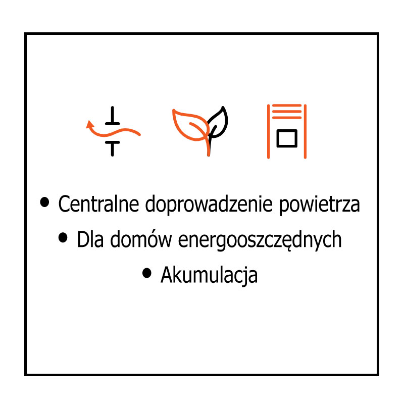 • Technologia i Ekologia: Z myślą o domach niskoenergetycznych został zaprojektowany system centralnego doprowadzenia powietrza z zewnątrz, dzięki czemu powietrze w pomieszczeniu pozostaje nienaruszone.