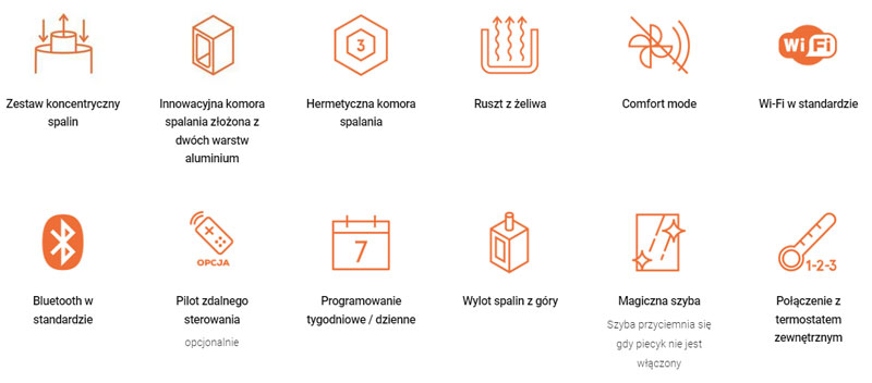 - Inteligentny termostat: Sekcja ta umożliwia tworzenie programów, które włączają i wyłączają piecyk na pellet. Dostosuj ustawienia dla optymalnego komfortu osobistego.