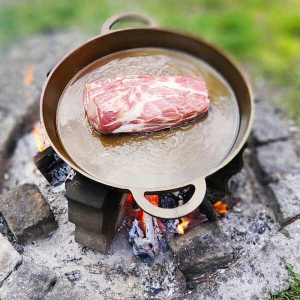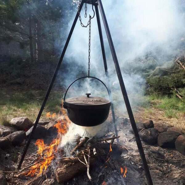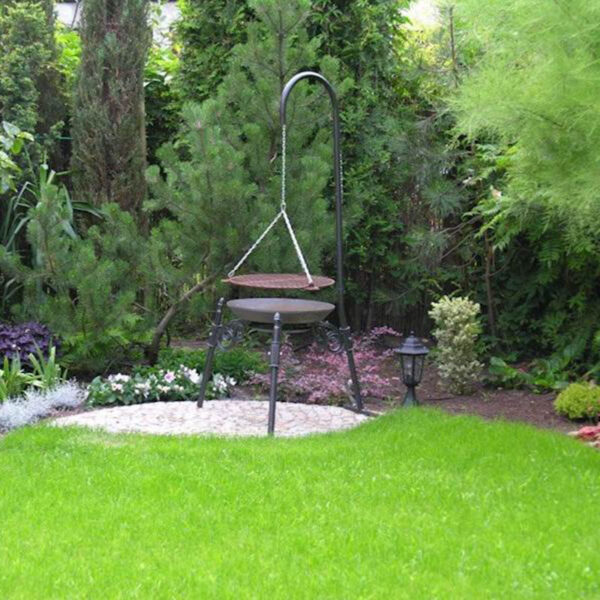 Ruszt, który może zostać zawieszony na trójnogu lub nad grillem, został zaprojektowany z myślą o maksymalnej wygodzie użytkowania. Jego funkcjonalność została dodatkowo wzbogacona o otwory na łańcuch, umożliwiające łatwe i bezpieczne zawieszenie.