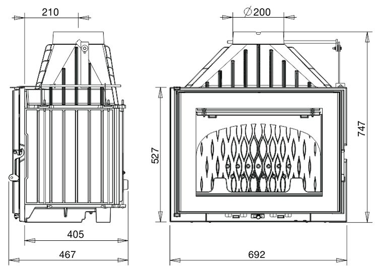 Pojemna, wysuwana szuflada popielnika, żeliwny ruszt oraz sprawnie działający system nadmuchu powietrza na szybę sprawiają, że eksploatacja i konserwacja kominka są łatwe i nie absorbują dużo czasu.